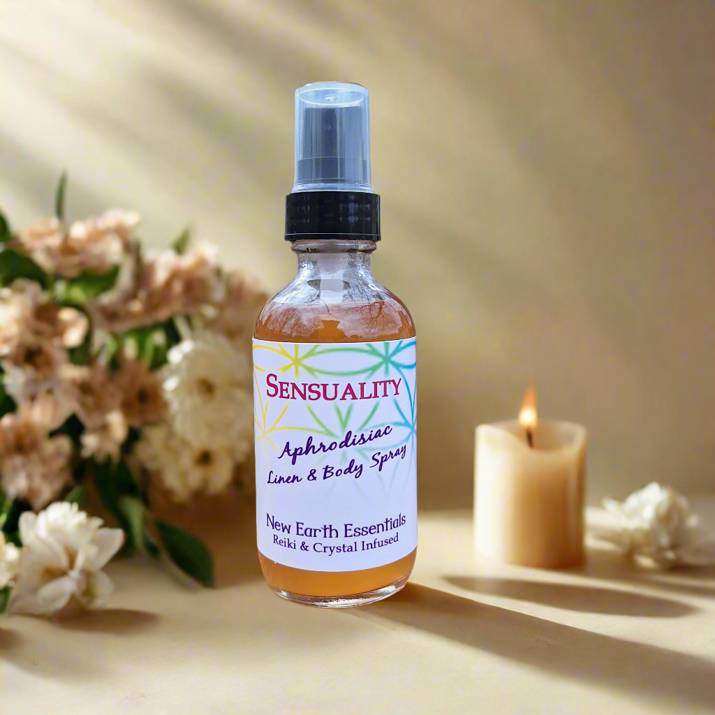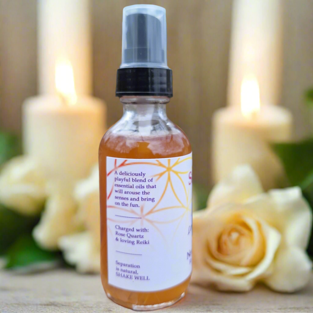 Looking for a natural way to invoke more playfulness? Sensuality is an essential oil based body & linen spray that can do just that! All oils in this blend were carefully selected to boost sex drive and passion plus they smell great too!