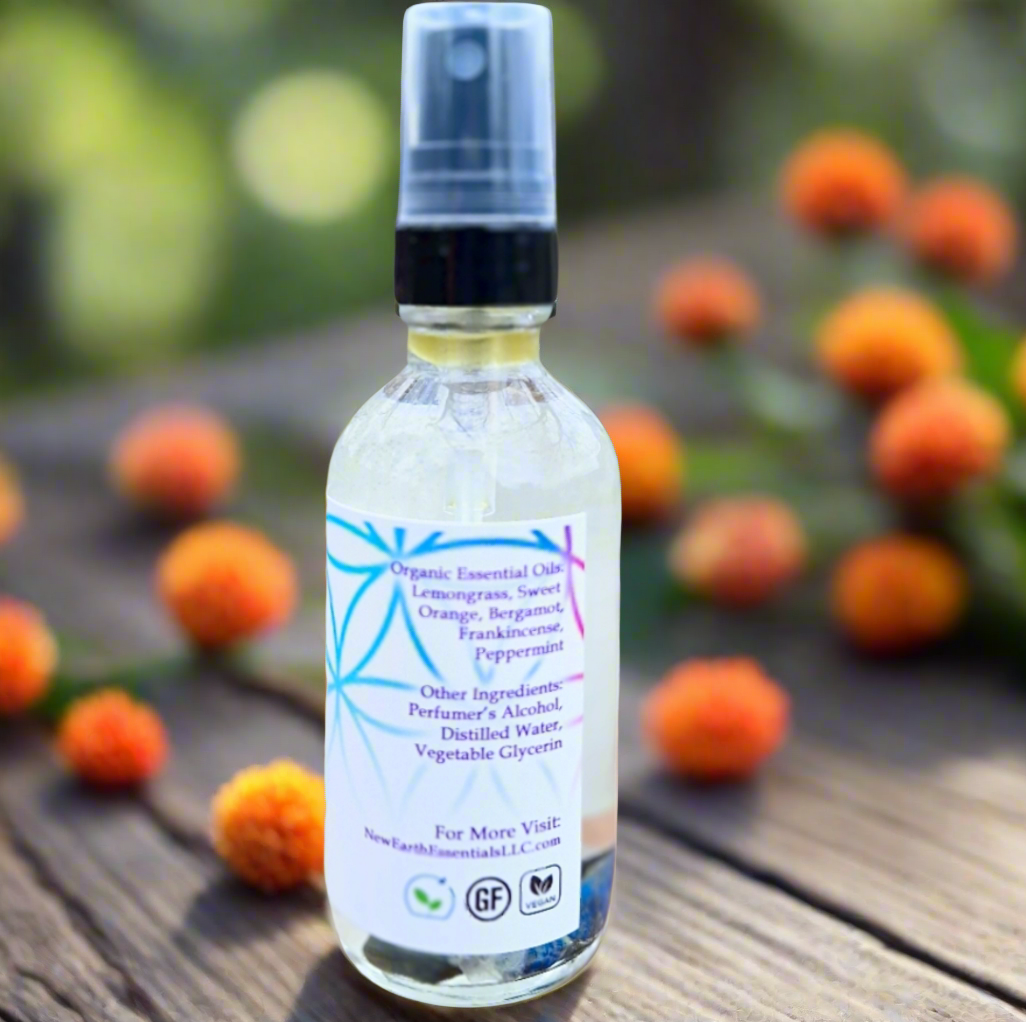 Like most of our products, this has been Reiki infused and Crystal Charged by Certified Reiki Practitioner Tiffany Silfies of New Earth Essentials, LLC. And this spray is organic, vegan, chemical free and housed in eco-friendly glass.