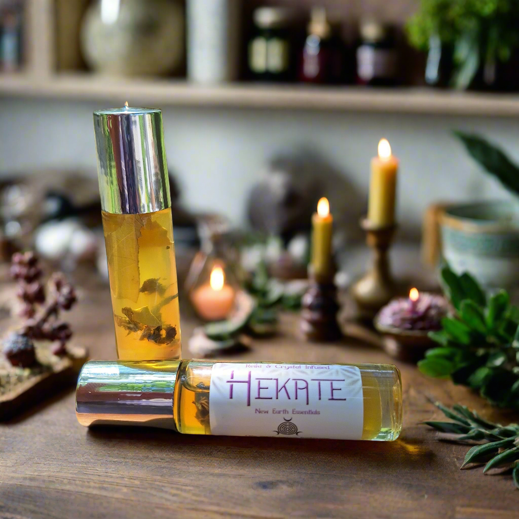 These oils channel Hekate’s energy of protection, deep transformation, and spiritual clarity. Together, they bring powerful alignment with the sacred and the unseen.