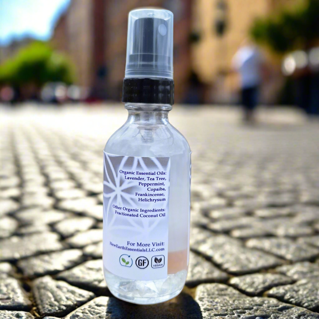 Like most of our products, this has been Reiki infused and Crystal Charged by Certified Reiki Practitioner Tiffany Silfies of New Earth Essentials, LLC. And this spray is organic, vegan, chemical free and housed in eco-friendly glass.